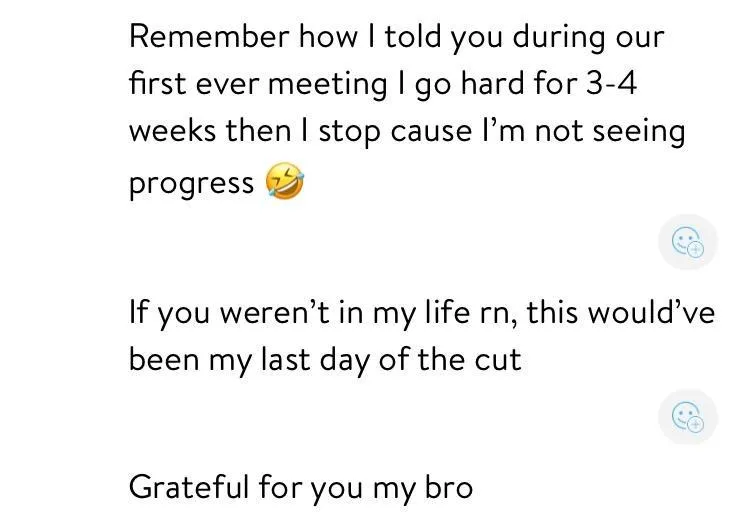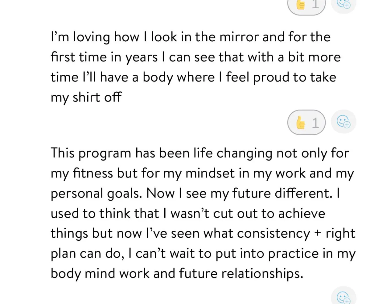 Great question, Rohan has created in-depth training demo videos that are so simple stupid you cant fck up. But if you do, we run training audit calls / videos. As well as in-depth 1:1 training audits with you on a video call to ensure you understand, this is then tracked and measured weekly until you are comfortable. We know its not in person, but honestly, as long as you can understand simple instructions and are open to asking questions you can literally become an elite level lifter.